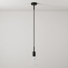 Linee pulite e finitura nera opaca definiscono la sospensione singola Plumen, progettata per portare equilibrio visivo e presenza senza eccessi.