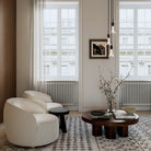 Perfetta sopra un tavolo, questa configurazione costruisce una luce scenica ma funzionale, che non sovrasta lo spazio: lo definisce.