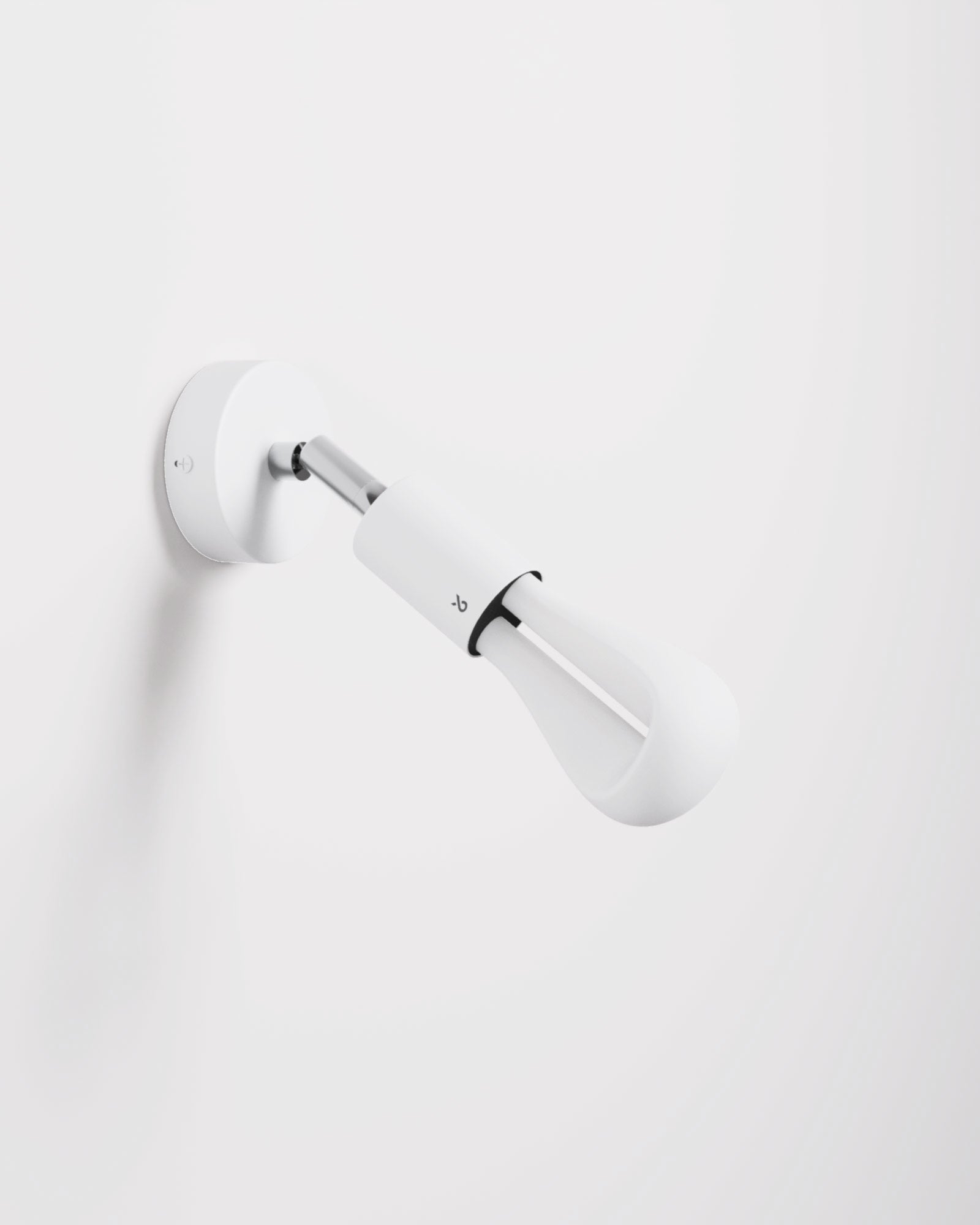 Questa lampada orientabile Plumen incarna il minimalismo con una presenza chiara e misurata.
