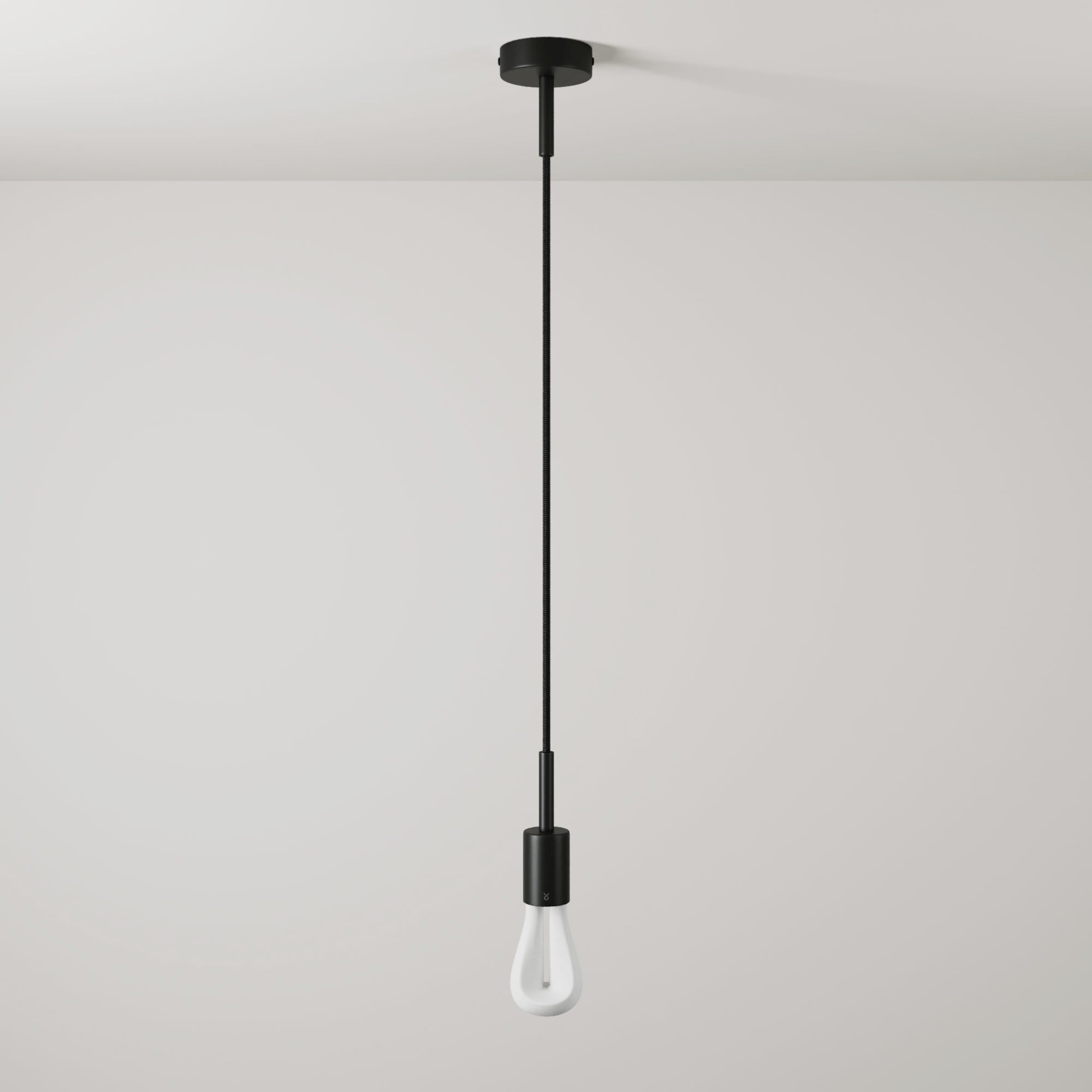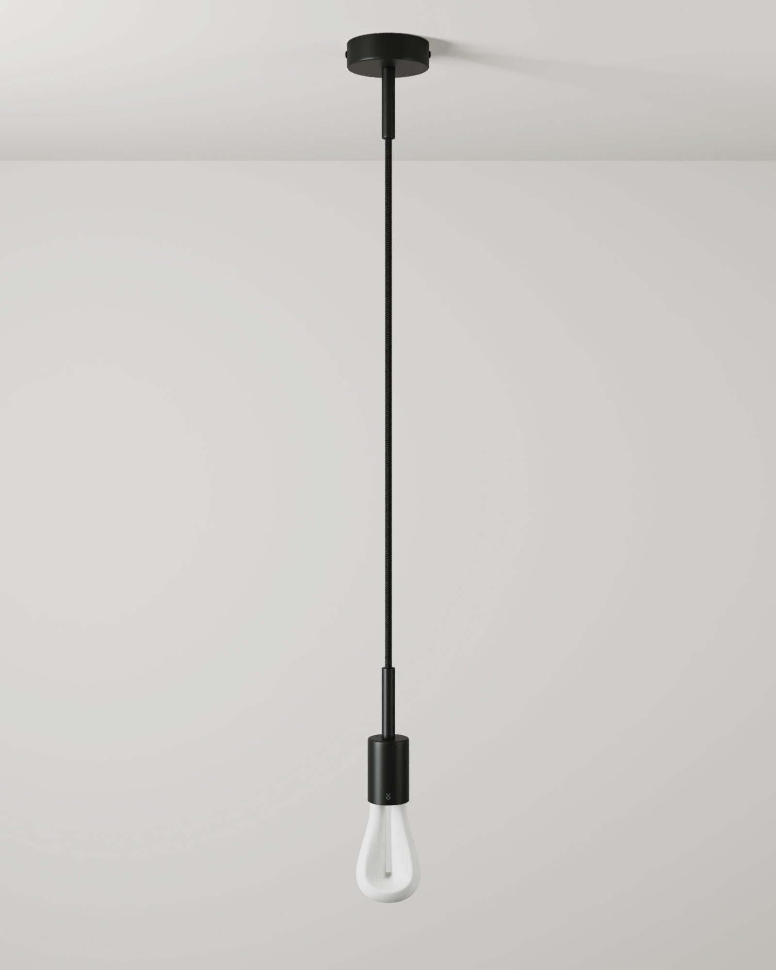 Essential in form and bold in presence, the Plumen single drop suspension in total black stands out for its understated elegance.