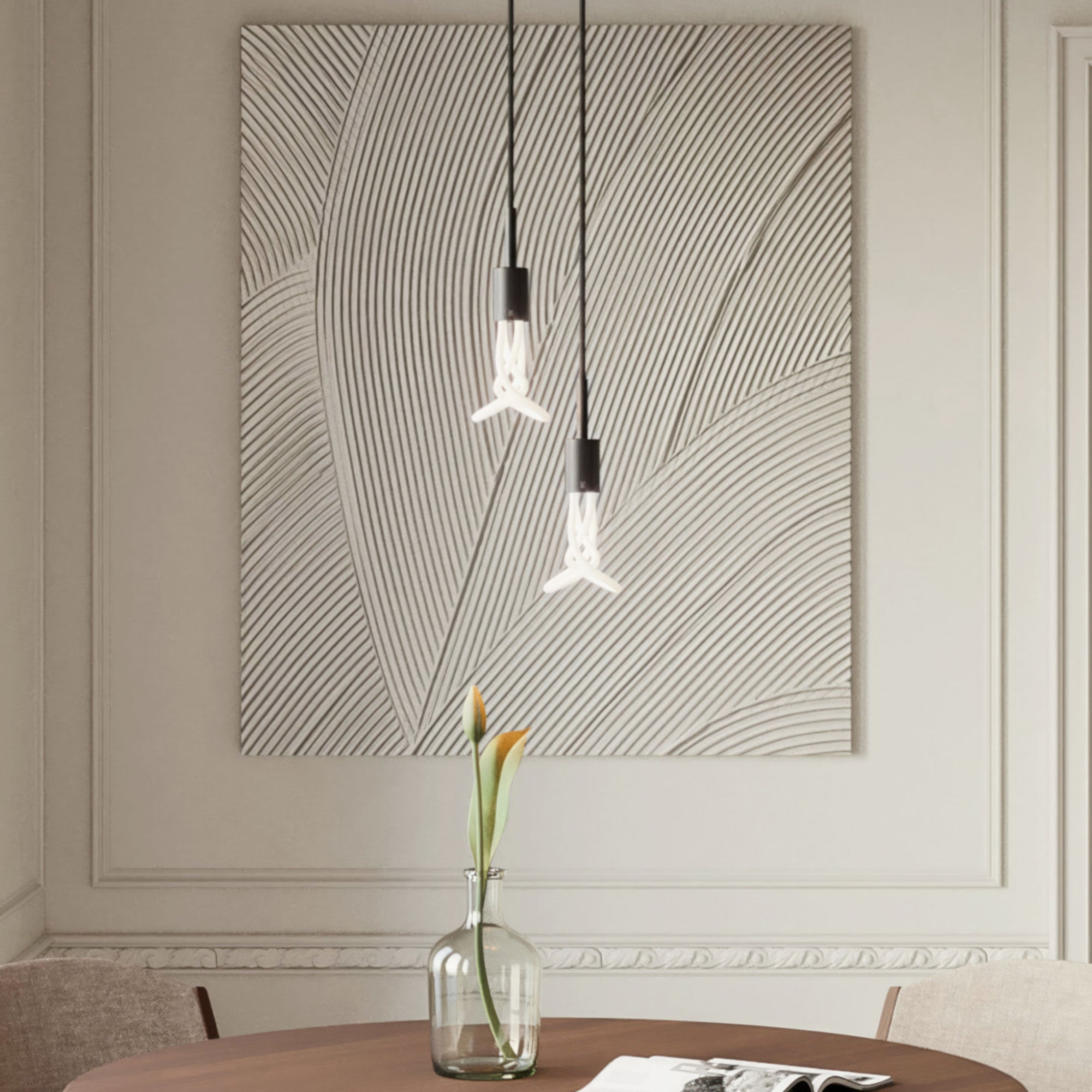 Une suspension essentielle, graphique, pensée pour des espaces qui nécessitent une présence.