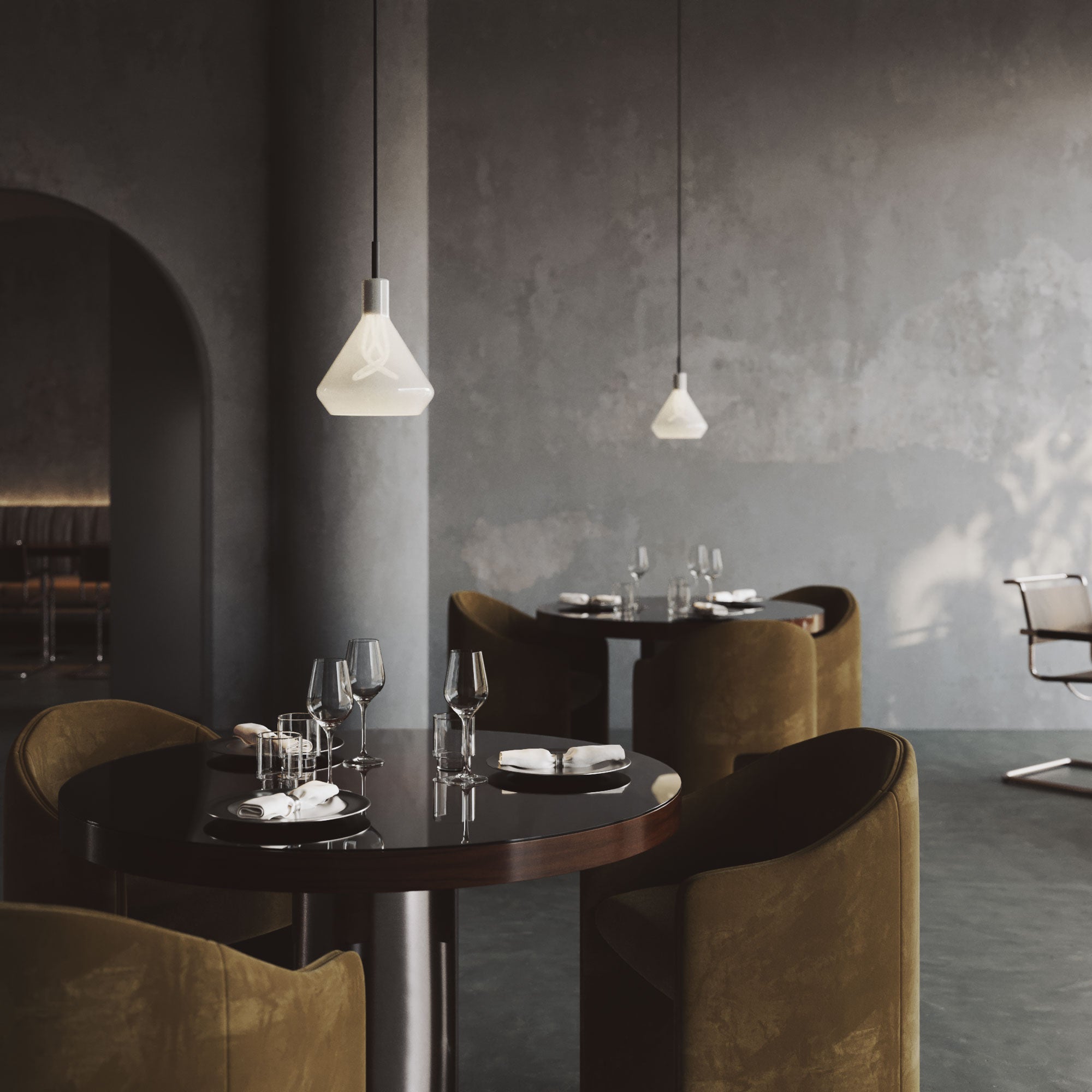 Une suspension pensée pour des espaces où la lumière n'est pas seulement fonction, mais fait partie du design.